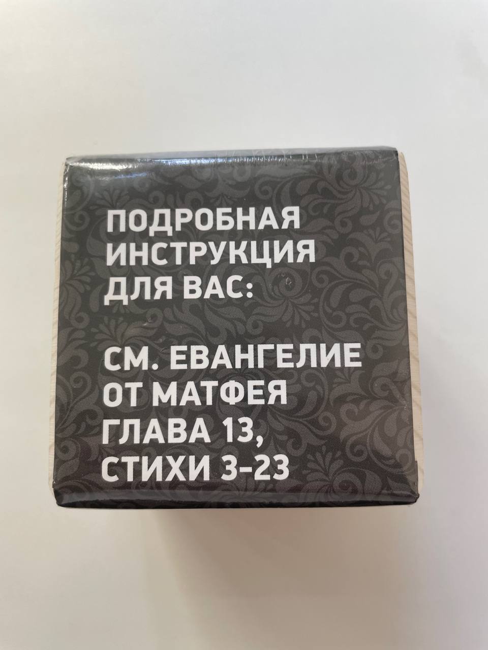 Срок годности 2 года. Дата изготовления указана на шубере. Габариты комплекта составляют 8 x 8 x 8 см. Сбоку куба находится, выполненный лазерной гравировкой, логотип «Журнал «Фома».