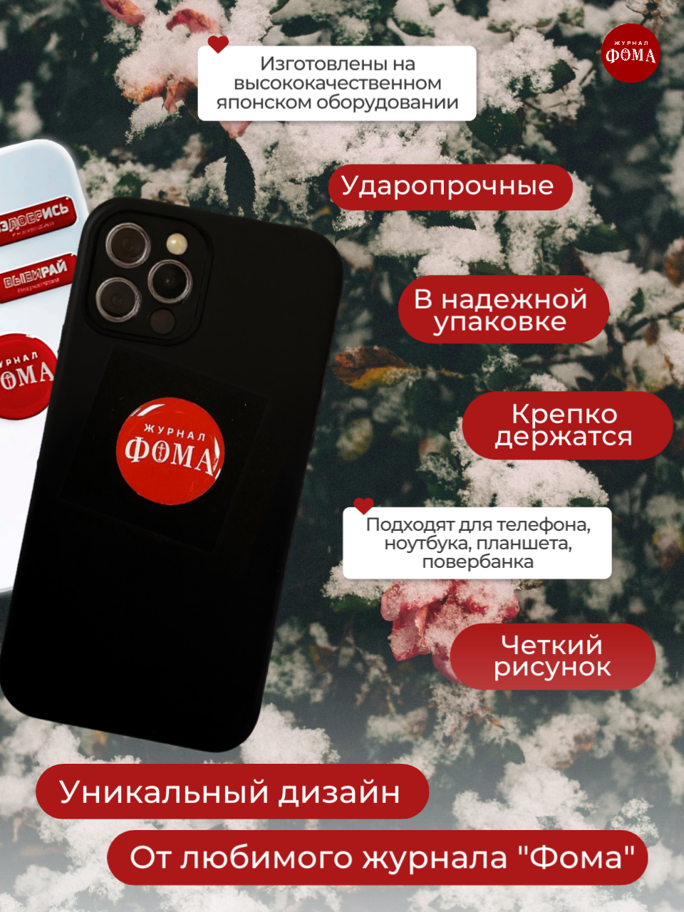 Представляем уникальный набор стикеров от любимого журнала «Фома» — идеальное дополнение к вашему смартфону, ноутбуку или планшету! Наши 3д стикеры изготовлены на профессиональном японском оборудовании и отличаются красочным, четким изображением, высокой ударопрочностью и влагостойкостью. Стикерпак создан в лаконичном дизайне, который соответствует брендовому стилю журнала «Фома». Эти объемные стикеры станут не просто украшением вашей техники, но и особенным подарком для ценителей православной культуры и интеллектуального чтения. В набор стикеров включены самые яркие и запоминающиеся слоганы с обложек журнала «Фома», которые поднимут настроение и вызовут интерес у окружающих. Эти эксклюзивные 3д стикеры станут отличным выбором для подарка близким людям на любое торжественное событие, ведь каждый православный верующий оценит оригинальность идеи и глубину послания. Подарите себе или близким частичку вдохновения и уникальности — стикерпак точно найдет отклик в сердцах христиан и поклонников журнала.