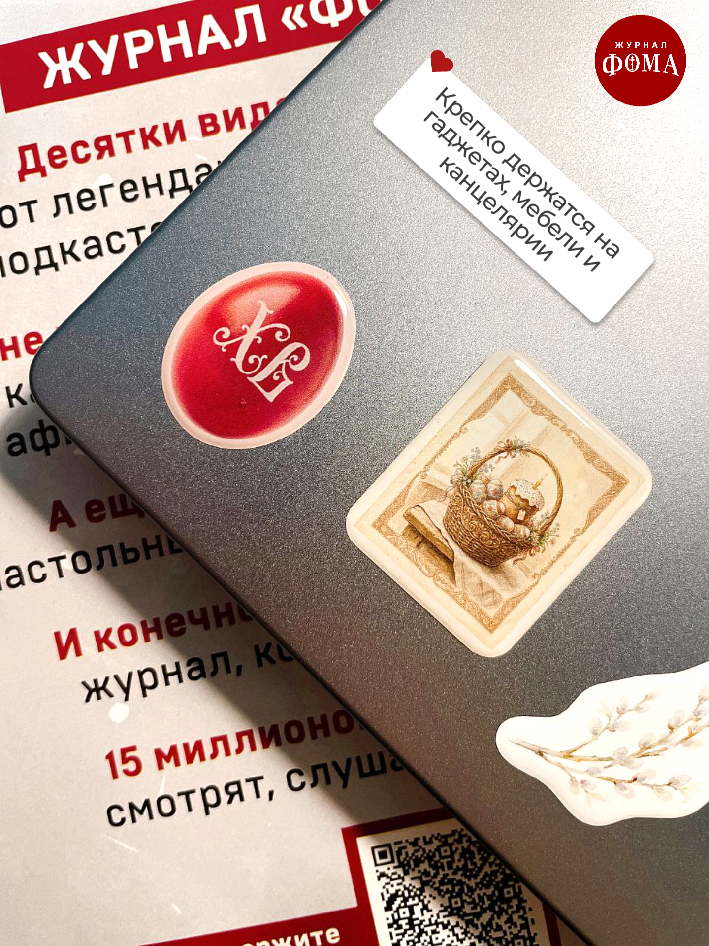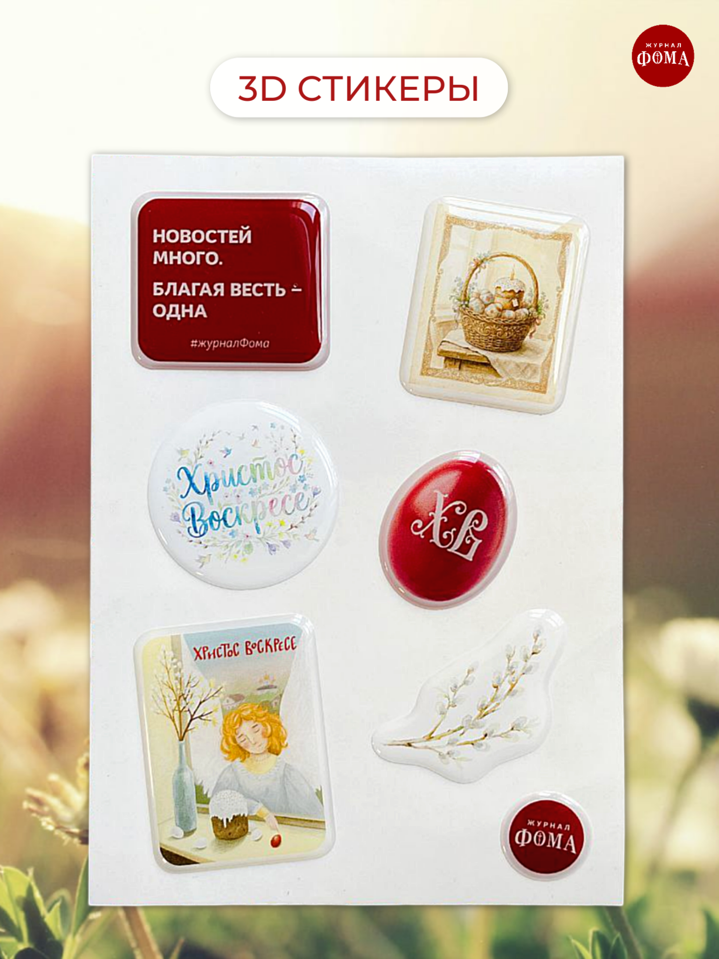 Представляем уникальный набор пасхальных стикеров от любимого журнала «Фома» — идеальное дополнение к вашему смартфону, ноутбуку или планшету! Наши 3д стикеры изготовлены на профессиональном японском оборудовании и отличаются красочным, четким изображением, высокой ударопрочностью и влагостойкостью. Стикерпак создан в лаконичном дизайне, который соответствует брендовому стилю журнала «Фома». Эти объемные стикеры станут не просто украшением вашей техники, но и особенным подарком для ценителей православной культуры и интеллектуального чтения. В набор стикеров включены самые яркие и запоминающиеся слоганы с обложек журнала «Фома», которые поднимут настроение и вызовут интерес у окружающих. Эти эксклюзивные 3д стикеры станут отличным выбором для подарка близким людям на любое торжественное событие, ведь каждый православный верующий оценит оригинальность идеи и глубину послания. Подарите себе или близким частичку вдохновения и уникальности — стикерпак точно найдет отклик в сердцах христиан и поклонников журнала.